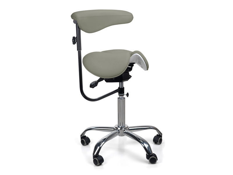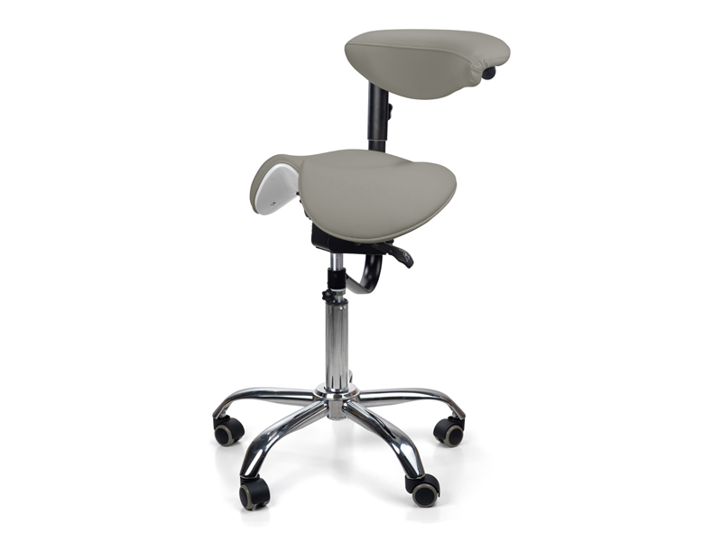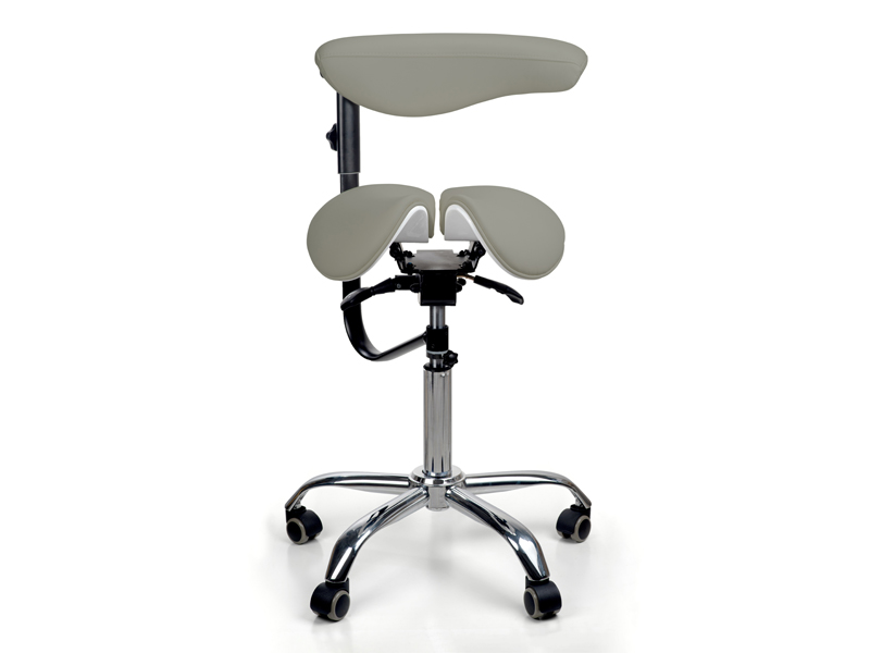 Эргономичный стул-седло модель 8016-2 серого цвета с разделенным сиденьем и удобной спинкой имеет 3 регулирующих механизма для изменения высоты стула и высоты спинки, а также для изменения угла наклона сиденья. Стул комплектуется фиксатором высоты стула. Спинка оборачивается вокруг оси и может служить подлокотником. Возможно использование сиденья в 2-х положениях - с фиксированными или балансирующими подвижными частями. При сидении на стуле-седле минимизируется давление в зоне копчика, т.к. основная опора приходится только на тазовые кости. Удобная эргономичная спинка способствует поддержанию поясничного корсета и фиксирования позиции на стуле.