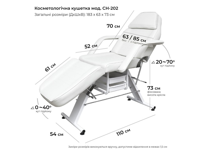 | Размер кушетки (ДхШхВ), см | 183х62х73 |