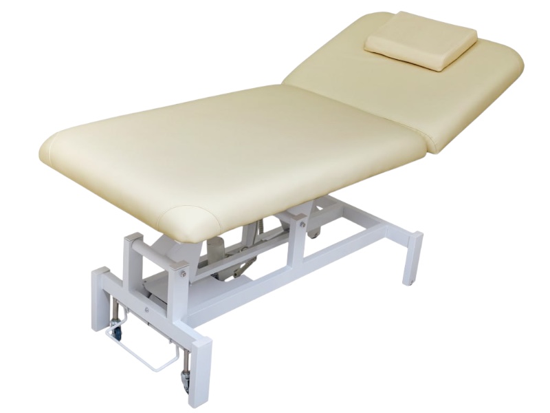 Массажный стол 2-х секционный модель 601-75 бежевого цвета с электрической регулировкой высоты и положения спинки. Широкая и высокая модель