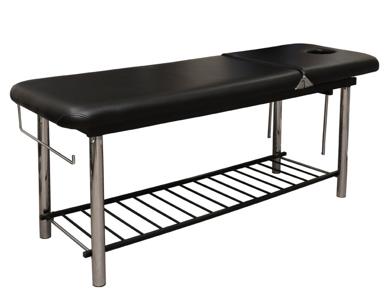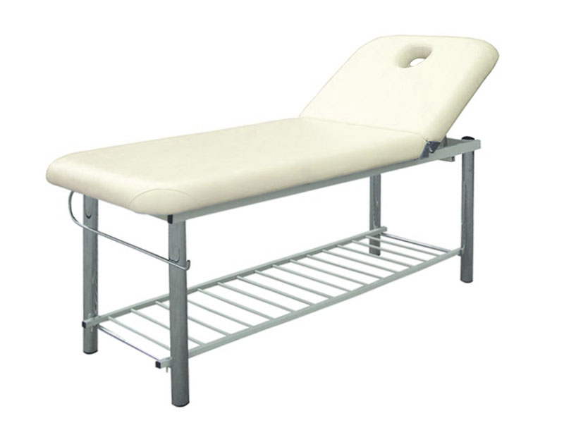Массажный стол мод. CH-219 белого цвета с фиксированной высотой 2-х секционный. Внизу кушетки расположена металлическая решетка для размещения рабочих принадлежностей или одноразовых материалов. В ножной части кушетки имеется крепление для рулона простыней.