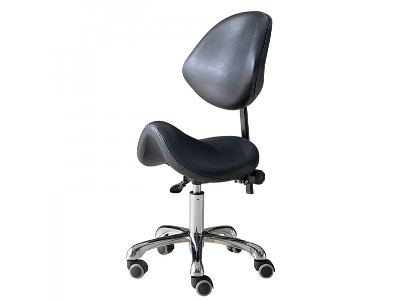 Стул-седло модель 053 для мастера с удобной элегантной спинкой  имеет 3 регулирующих механизма для изменения высоты стула, угла наклона спинки и высоты спинки. Позволяет подобрать наиболее удобное положение для мастера.