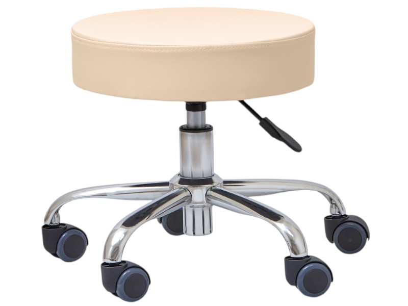 Стул для мастера педикюра мод. 305 бежевого цвета это практичное решение для мастера педикюра. Выбрав данную модель стула, Вы подчеркнёте индивидуальность Вашего салона, косметологического кабинета или студии. Сидение в виде таблетки, выполнено из прочного износостойкого кожзаменителя - полиуретана. Качественный наполнитель делает стул удобным и нежёстким. Пятилучная крестовина с манёвренными полиуретановыми колёсиками обеспечивает тихое и лёгкое передвижение.