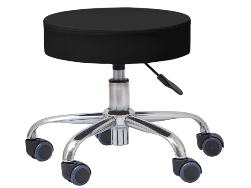 Стул для мастера педикюра мод. 305 черного цвета это практичное решение для мастера педикюра. Выбрав данную модель стула, Вы подчеркнёте индивидуальность Вашего салона, косметологического кабинета или студии. Сидение в виде таблетки, выполнено из прочного износостойкого кожзаменителя - полиуретана. Качественный наполнитель делает стул удобным и нежёстким. Пятилучная крестовина с манёвренными полиуретановыми колёсиками обеспечивает тихое и лёгкое передвижение.