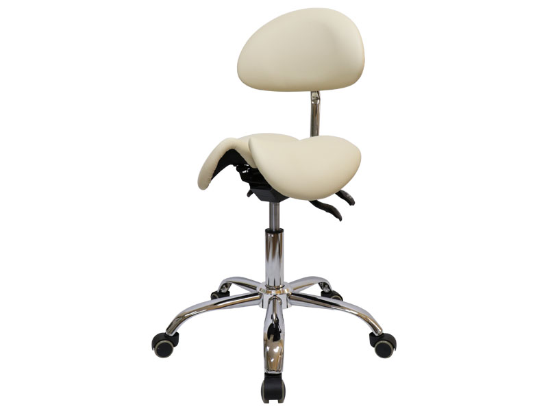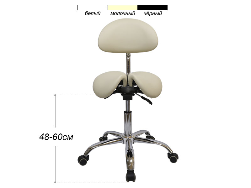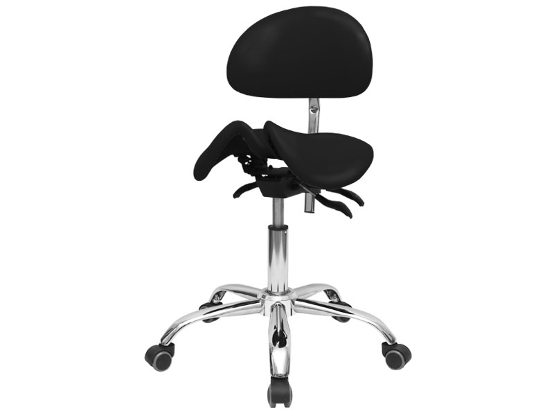 Эргономичный стул-седло модель 4008-1 черного цвета с разделенным сиденьем и удобной спинкой имеет 4 регулирующих механизма: 3 рычаговых механизма для изменения высоты, угла наклона спинки и наклона сиденья и 1 один механический механизм для регулировки высоты спинки. Возможно использование сиденья в 2-х положениях - с фиксированными или балансирующими подвижными частями. При сидении на стуле-седле минимизируется давление в зоне копчика, т.к. основная опора приходится только на тазовые кости. Удобная эргономичная спинка способствует поддержанию поясничного корсета и фиксирования позиции на стуле.