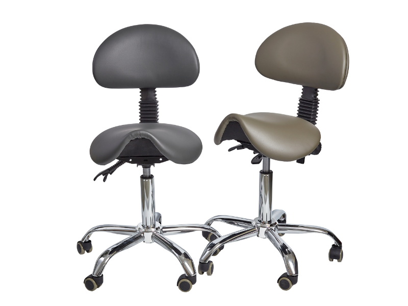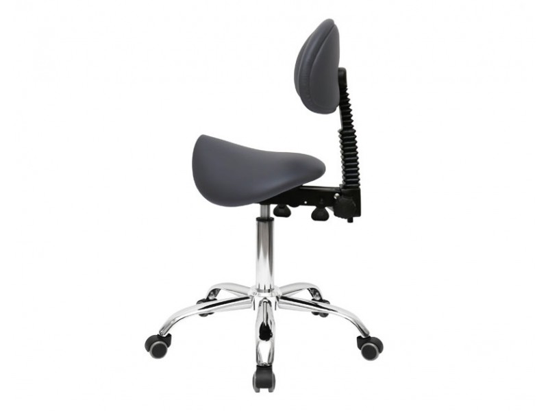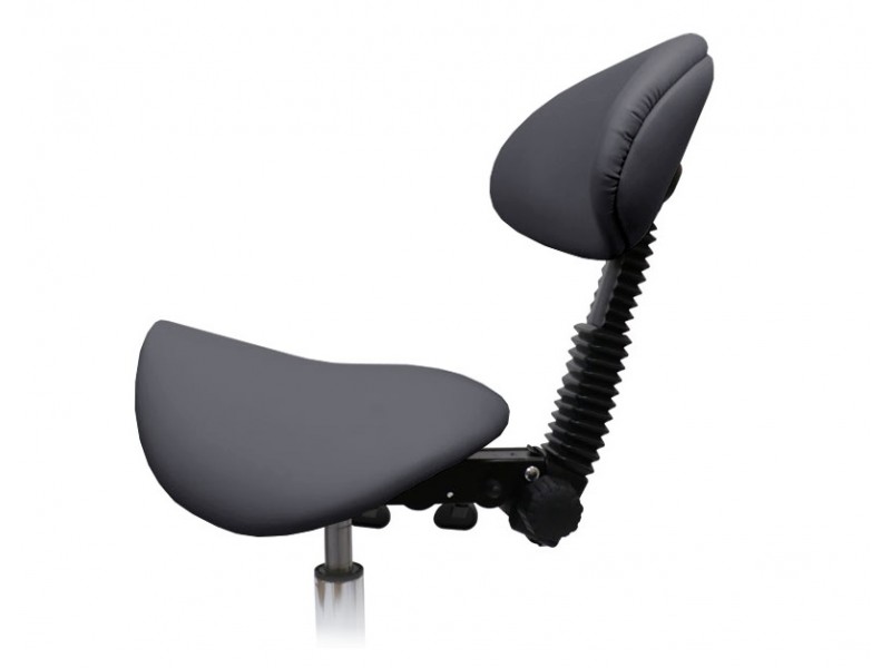 Стул-седло модель 1037-3 в цвете АНТРАЦИТОВЫЙ для мастера с удобной элегантной спинкой имеет 3 регулирующих механизма для изменения высоты стула и угла наклона спинки и высоты спинки. Позволяет подобрать наиболее удобное положение для мастера.
