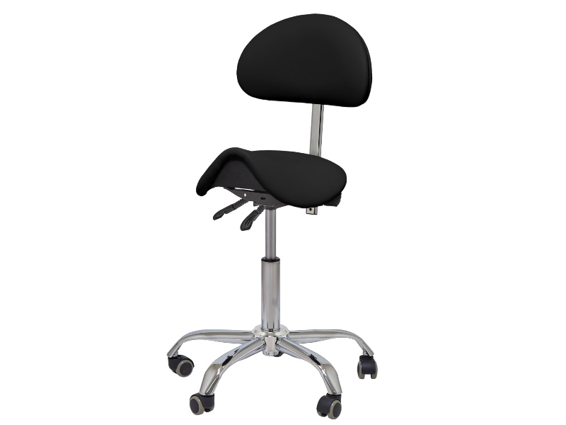 Стілець-сідло модель 1037-6 чорного кольору для майстра зі зручною елегантною спинкою має 3 механізми регулювання для зміни висоти стільця, кута нахилу спинки і висоти спинки. Дозволяє підібрати найзручніше положення для майстра.