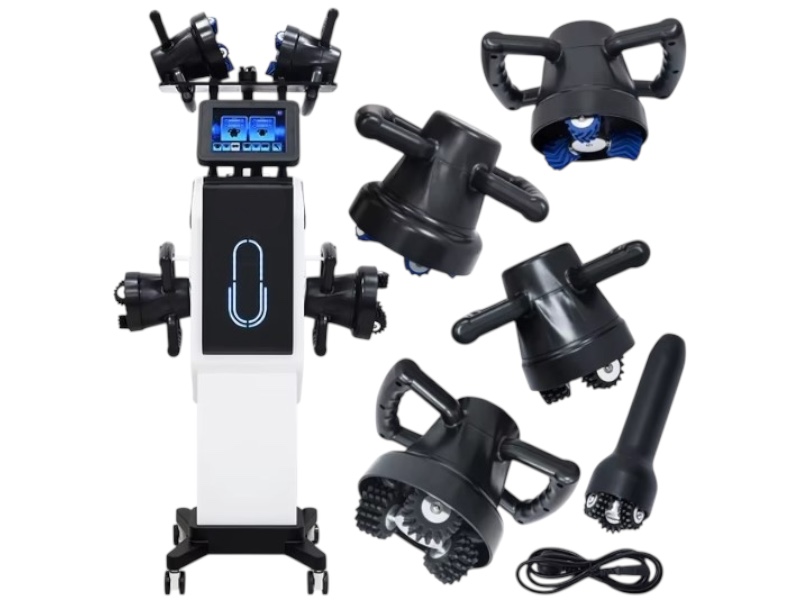 У комплектацію входить 5 насадок: 2 Великі на 5 роликів, 2 середні на 3 ролики, 1 маленька на 3 ролика для невеликих зон тіла і обличчя за допомогою яких досягається відмінний ефект корекції фігури: лімфодренаж, ліфтинг, анцелюлітний ефект, зменшення об'ємів, схуднення і підтяжка та ліфтинг обличчя.