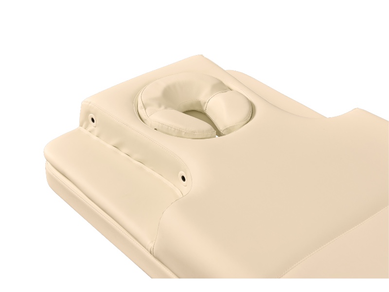 Розкладається до горизонтального положення. У верхній частині розташовується отвір для обличчя, підголівник і знімні підлокітники.