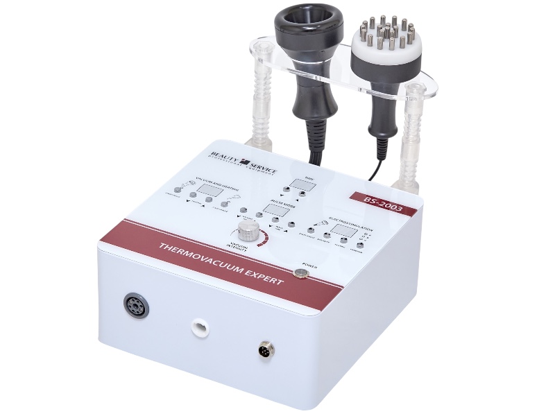 ТЕРМОВАКУУМ 3-в-1 мод. 2003 Beauty Service™ призначений для професійного застосування в салонах краси та центрах корекції фігури. Апарат оснащений двома насадками різного діаметру для термовакуумного масажу для комфортної роботи на різних ділянках тіла, насадкою для біоелектростимуляції + набір для класичного вакуумного масажу.