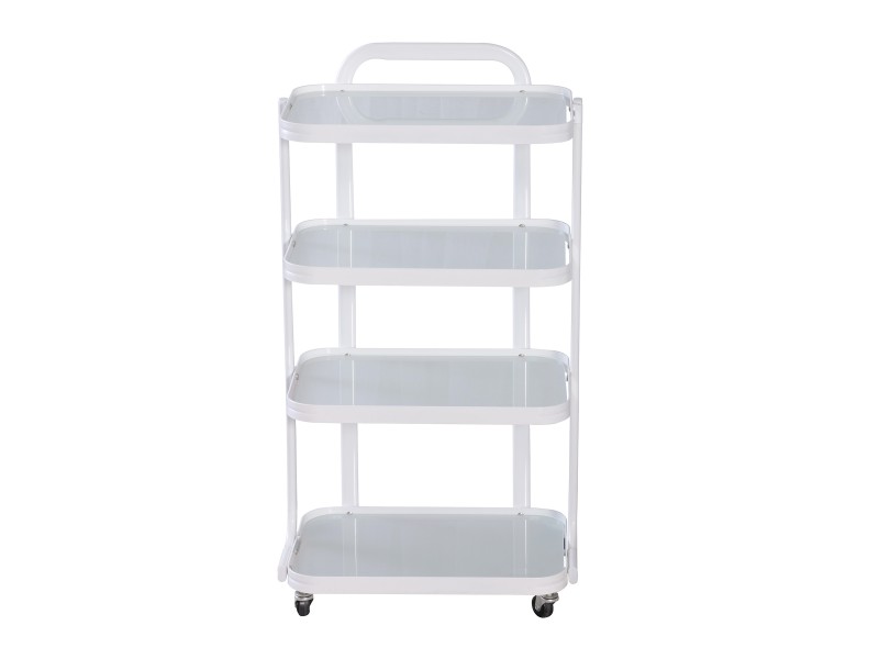 Усі полички виготовлені із сатинового скла завтовшки. Закруглений дизайн поличок робить візок естетично привабливим.