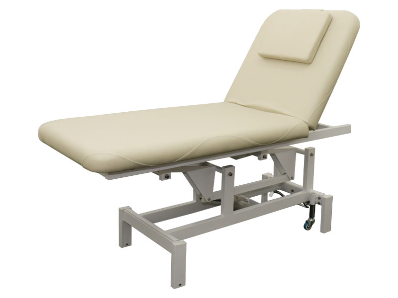 Масажний стіл модель 269 бежевого кольору з електричним регулюванням висоти і положення спинки. Ложе шириною 70 см дозволяє комфортно розмістити пацієнтів будь-якої комплекції і ваги.
