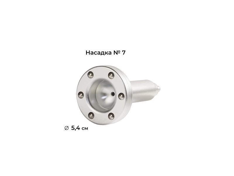 Металева насадка з кульками для вакуумного масажу №7 діаметром 54 мм виконана зі сплаву алюмінію. Поєднання вакуумної і механічної дії дозволяє глибше опрацьовувати тканини.