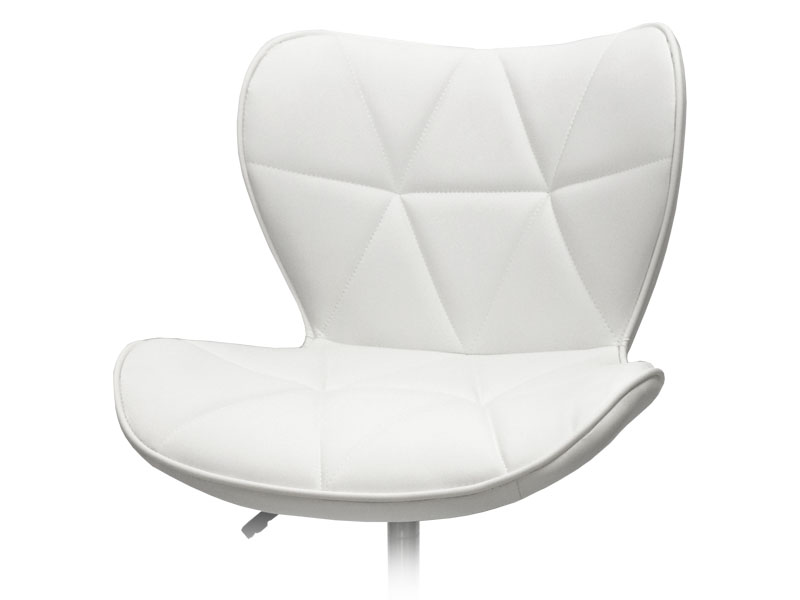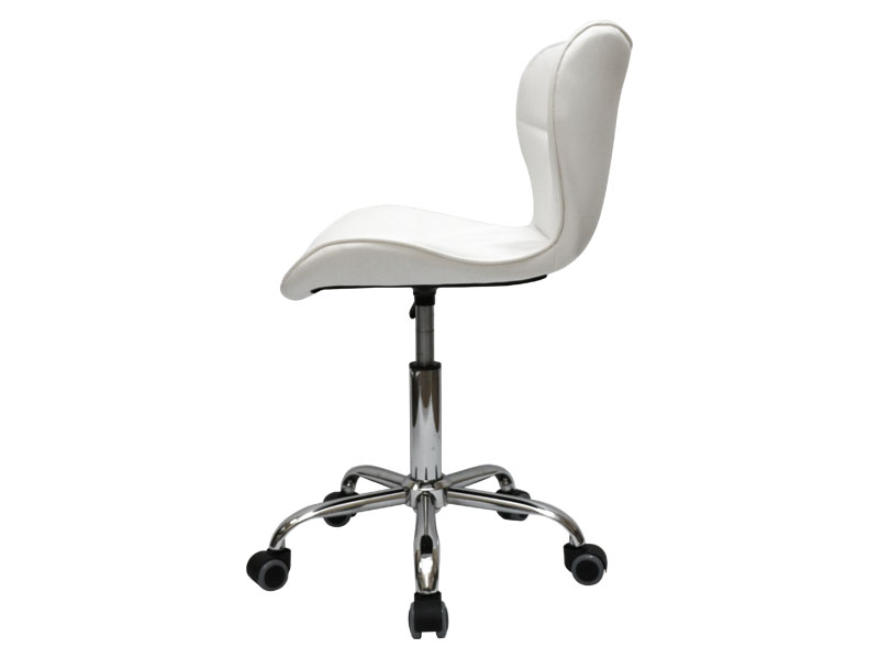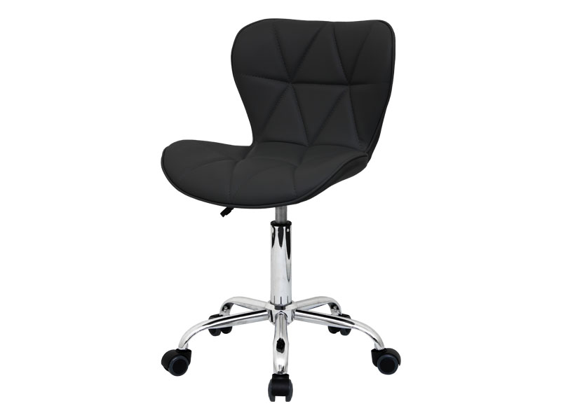 Стілець для майстра мод.161 чорного кольору поєднує в собі елегантність, практичність, стильний дизайн і комфорт. Вибравши дану модель стільця, Ви підкреслите індивідуальність Вашого салону, косметологічного кабінету або студії стилю. Сидіння виконано з міцного зносостійкого шкірозамінника - поліуретану, з декоративним прошиттям і білим обідком по периметру. Якісний наповнювач робить стілець зручним і нежорстким. Пїятипроменева хрестовина з поліуретановими колесами забезпечує тихе і легке пересування.