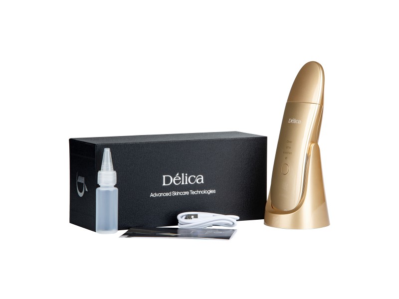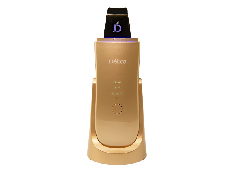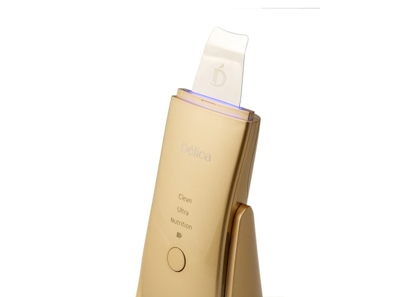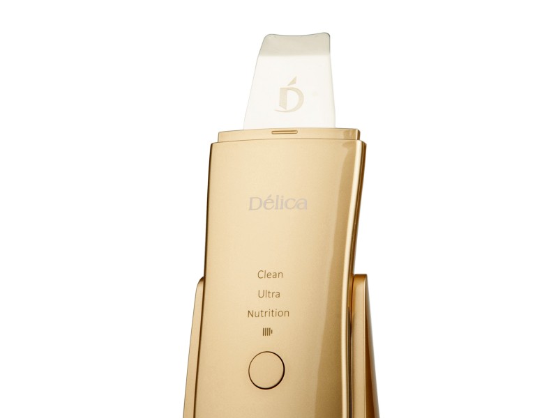 Портативний ультразвуковий скрабер з автоматичним атомайзером і класом водозахисту IPx5 Delica ™ кольору шампань - БЕЗДРОТОВИЙ, НАДТОНКИЙ, ЕКСТРАЛЕГКІЙ, ЕНЕРГОЗБЕРІГАЮЧИЙ та МАКСИМАЛЬНО ЕФЕКТИВНИЙ апарат для домашнього догляду за шкірою, а також для професійного застосування в умовах косметологічного кабінету.